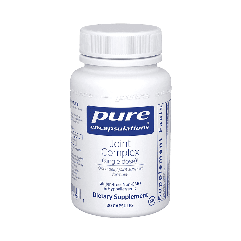 Joint Complex supports joint function and comfort by combining ingredients that operate as cartilage building blocks and herbal extracts into one convenient once-daily capsule. Joint Complex also supports tissue hydration and joint lubrication.